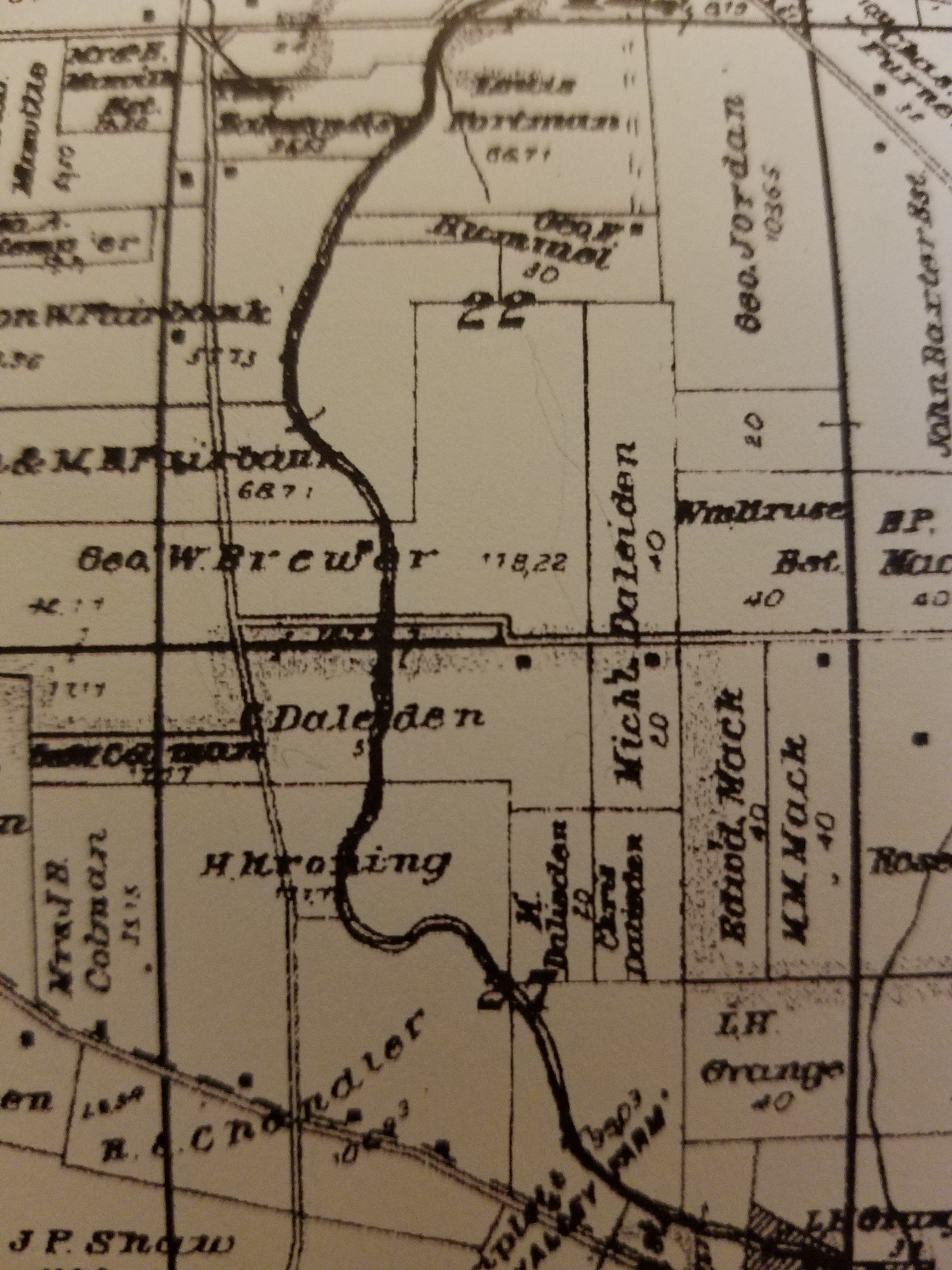 This 1904 map of Winfield Township in DuPage County Illinois shows that Michael Daleiden owned property. Michael owns forty acres of land. One of the two lots were a field with no structures on the property. Christopher Daleiden (Michael’s brother) appears to own fifty acres One of the lots is a field with no structures on the property. Christopher in 1904 also owns property in Winfield. Note on this map Mack Road’s dogleg in the road as it heads west over a bridge on the West Branch of the DuPage River. Source: 1904 Atlas of DuPage County Illinois, Illinois Digial Archives.