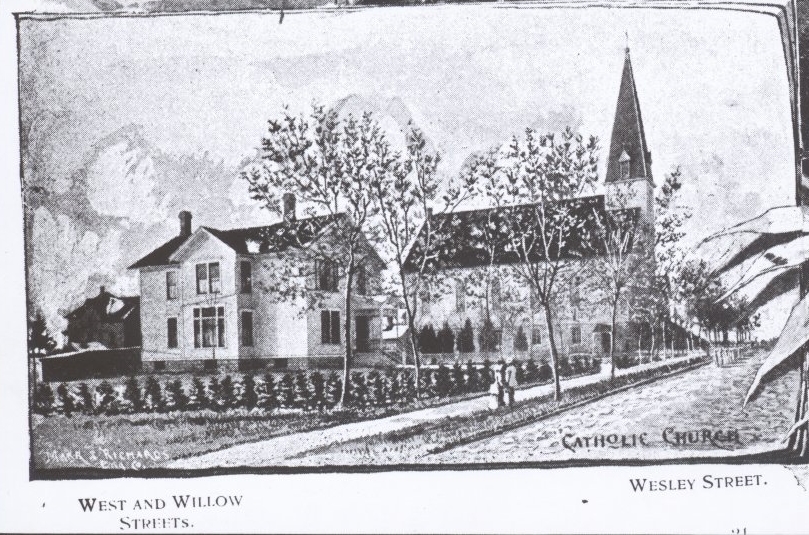 In 1879 Casper joined a group of fourteen other families within the Wheaton area to get together and start a new church for Catholics in Wheaton. The church was begun in 1879. Four lots in Wheaton were purchased for $250 on the area within Willow Avenue, West Street, and Wheaton Avenue on the south west side of Wheaton. Construction on the basement was completed and the construction was halted for several years. Casper Schlick is shown as donating $600 for the establishment of the new church on a ledger kept by Earl Sauer, the Treasurer of the Church. Casper would become one of the first Trustees for St. Michaels Church of Wheaton. The new building was finally completed and dedicated in 1882.