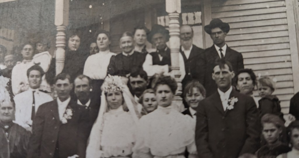 This photo taken on October 1906 on the front porch of the Christopher Daleiden home on Church St. in Winfield shows members of the Armbrust Family and Schlick Family together. Martin Schlick (he is the man with the white beard) is standing with Christopher and Margaret Daleiden to his right. This event was the wedding of Susan and Casper Schlick. (Photo Credit: Frank J. and Mae C. Schlick Estate Photo Archive).