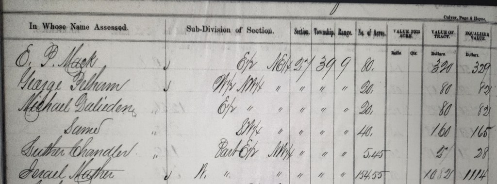 The other benefit of reviewing the Tax Rolls side-by-side with the U.S. Census is learning surnames of what has been termed by Genealogists as F.A.N.s (Friends, Associates and Neighbors). The large and longtime landowners along Mack Road include: Macks, Fairbanks, Mathers, Triplets and Chandlers. Using the DuPage County mug book or a local history book you can see if their names are listed with biographies of their lives.