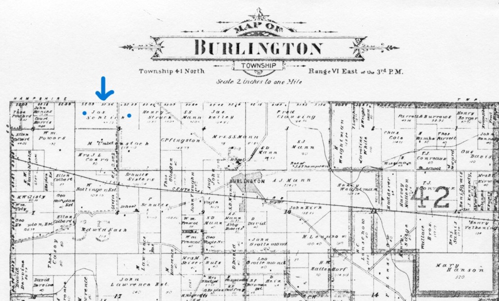 This three part posting will provide details of the Joseph Schlick and his sister Maria Schlick Schneider life, work, farming activities, civic contributions, and connections to the Village of Burlington in Burlington Township, Kane County Illinois. Both the Schlicks and the Schneiders contributed to the growth of the community of Burlington, Illinois. As we will see, Joseph Schlick became a leader in the community. Joseph served both as the Mayor of the Village of Burlington and also served terms on the local Burlington School Board.