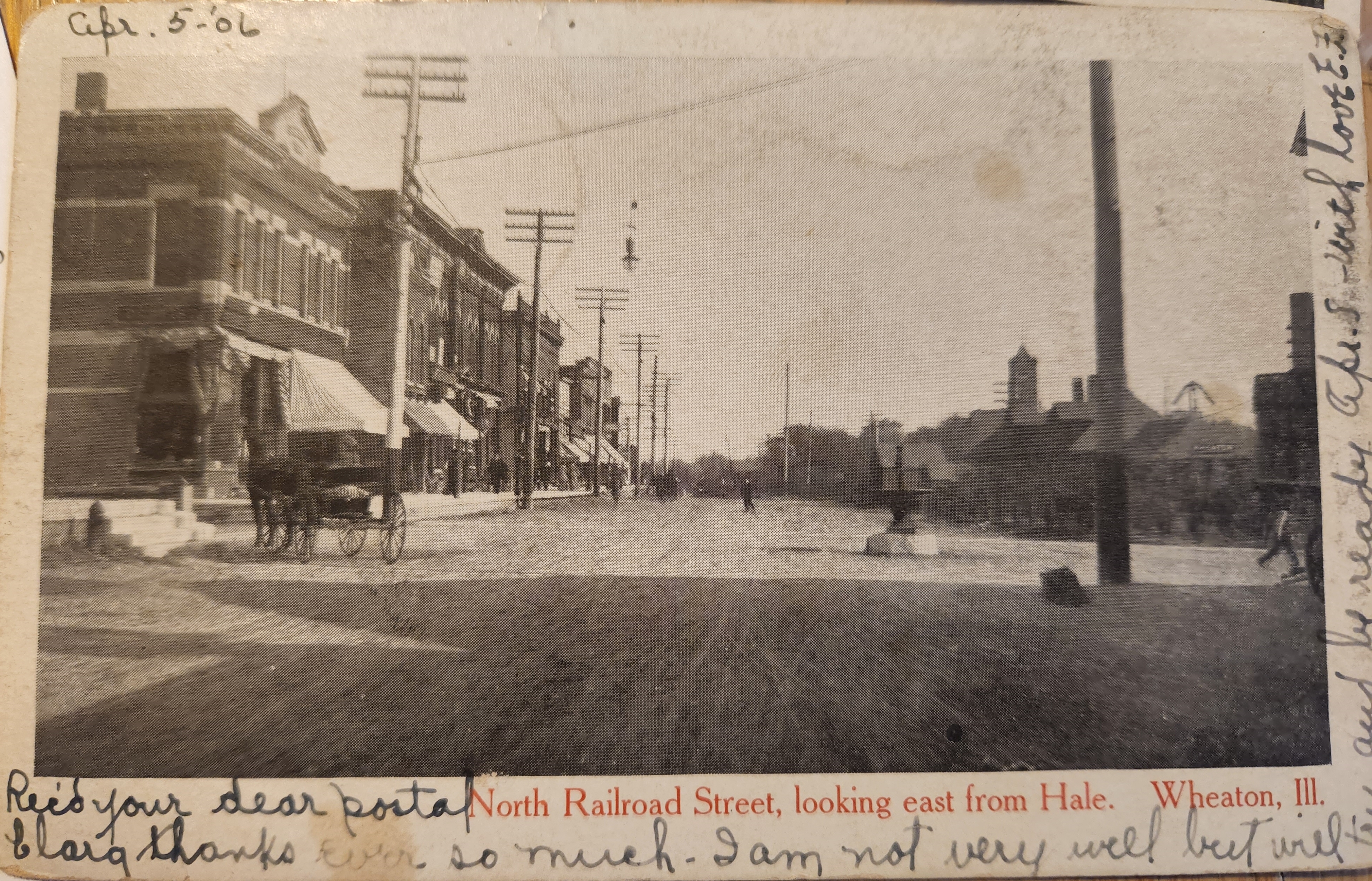 Due to the fact that I like “going down rabbit holes”, I searched Clara Bosma’s name for the 1900 Census for Union Grove Wisconsin in Racine County. Clara in 1900 was born in 1891 and was six years old. In 1906 she was nine and one of three children of Mr and Mrs. John and Annie Bosma Clara’s sister were Emma (16) and Ida (13). Clara’s father and paternal grandparents were born in Holland. Perhaps the person writing the note was he mother or a friend visiting relatives or friends in Wheaton.