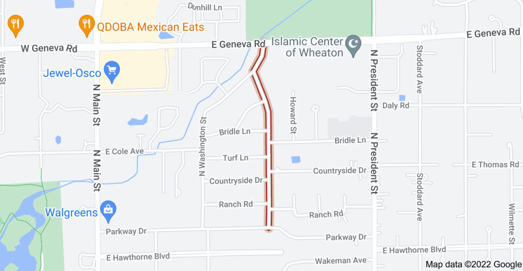 The photo an current map shown above is of the “Driving Park” race track at the Wheaton Fair in 1908. This was formerly located on the north side of Wheaton, Illlinois just south of Geneva Road and east of Main Street near the Wheaton Eye Clinic. There is a lot to take in looking at this photo. There are four people harness racing coming out of a turn. A judge’s stand to the right. Spectator stands to the left and on the inside of the track.