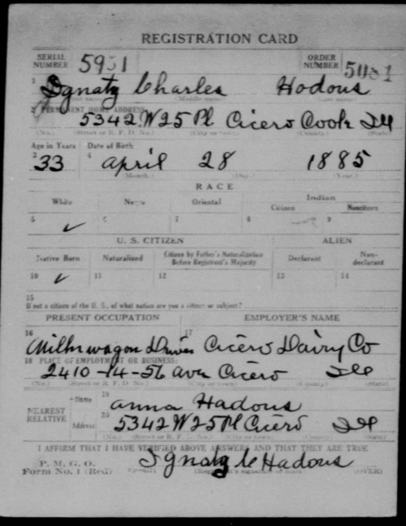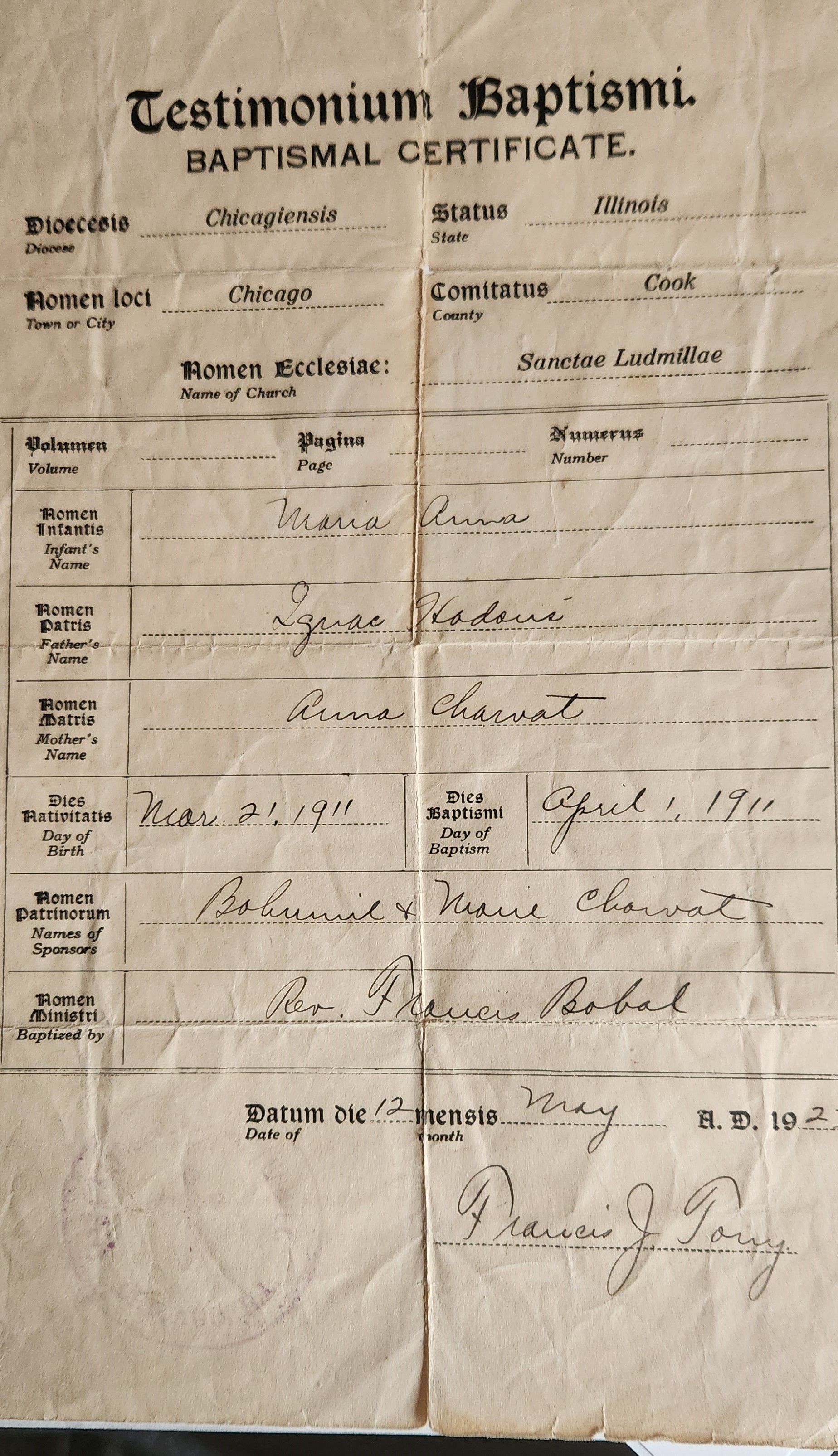 Her father’s parents were Bohemian and born in Bohemia which later began part of Czechoslovakia. The family settled in Chicago’s southwest side near 22nd Street. It is interesting to note per the Encyclopedia of Chicago that “by the turn of the century, Chicago was the third largest Czech city in the world, after Praque and Vienna”. The Czechs and Bohemian popluation reached its peak in 1870. The Hodouses were part of a larger immigrant influx of Eastern European people settling in the City of Chicago.